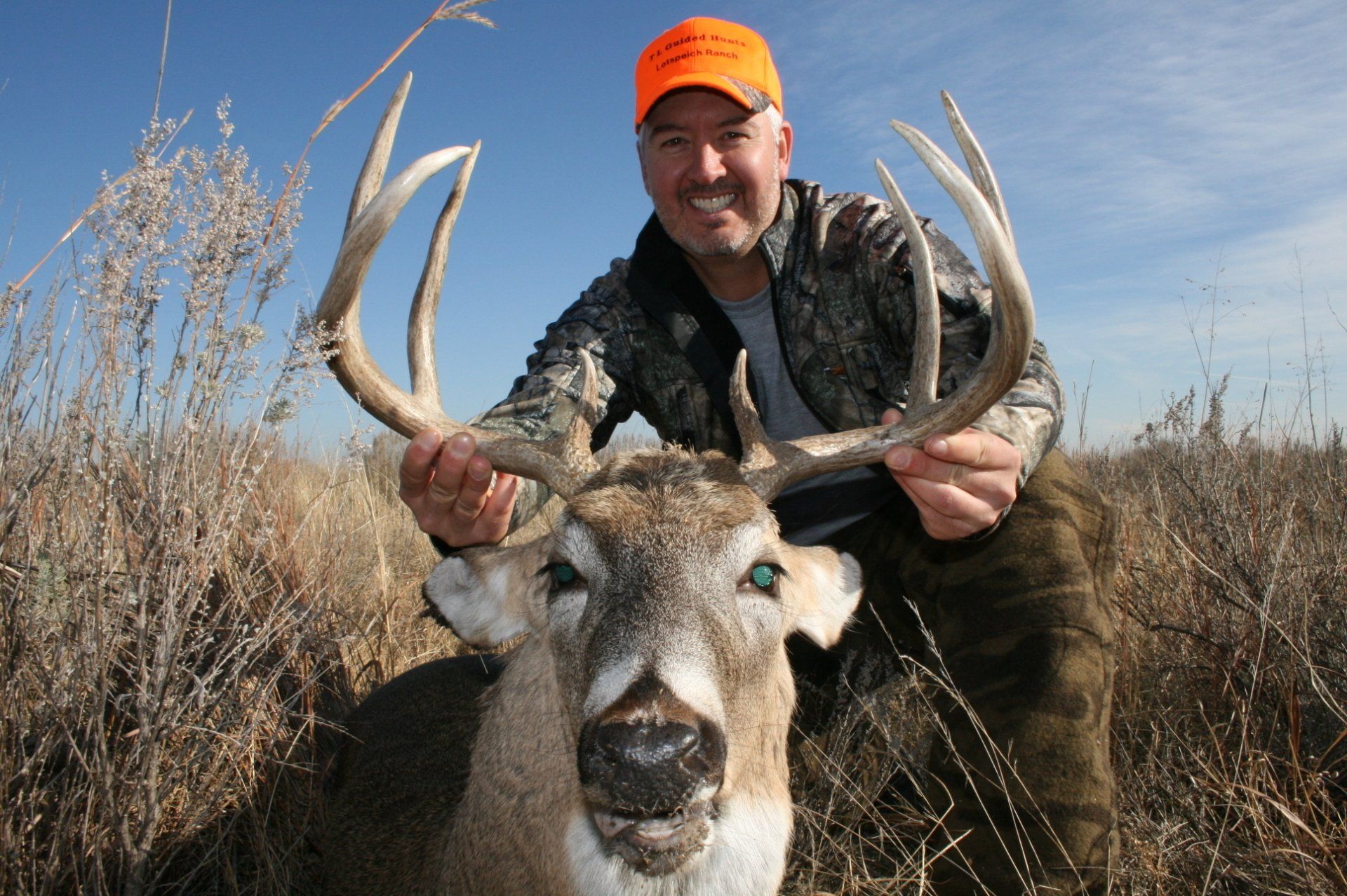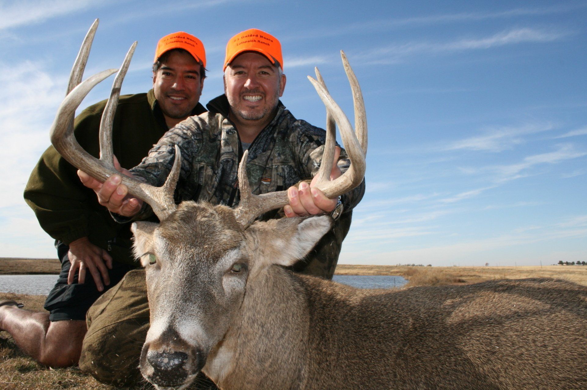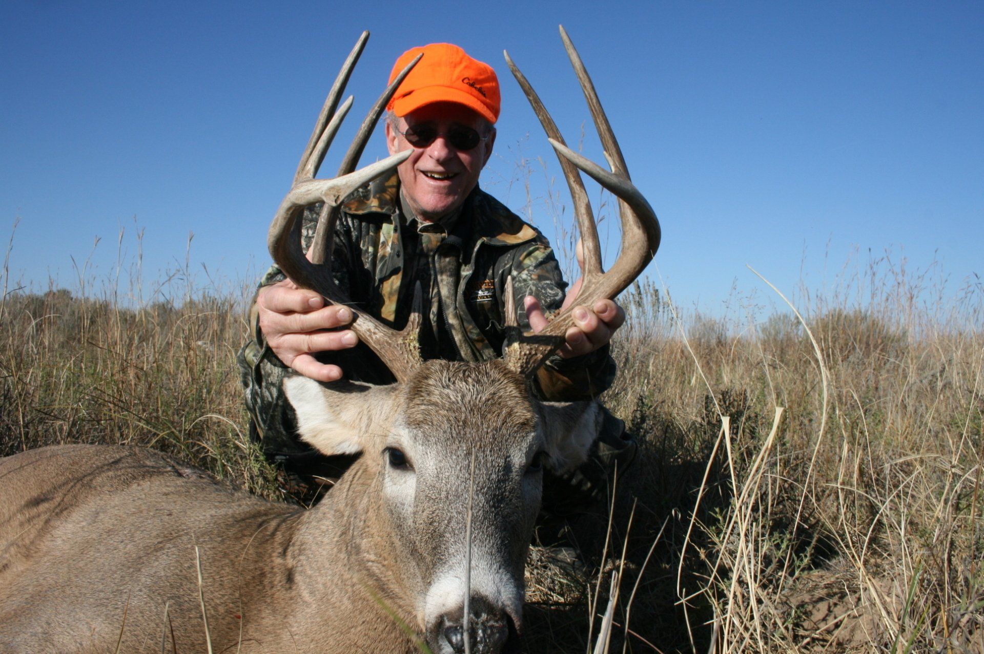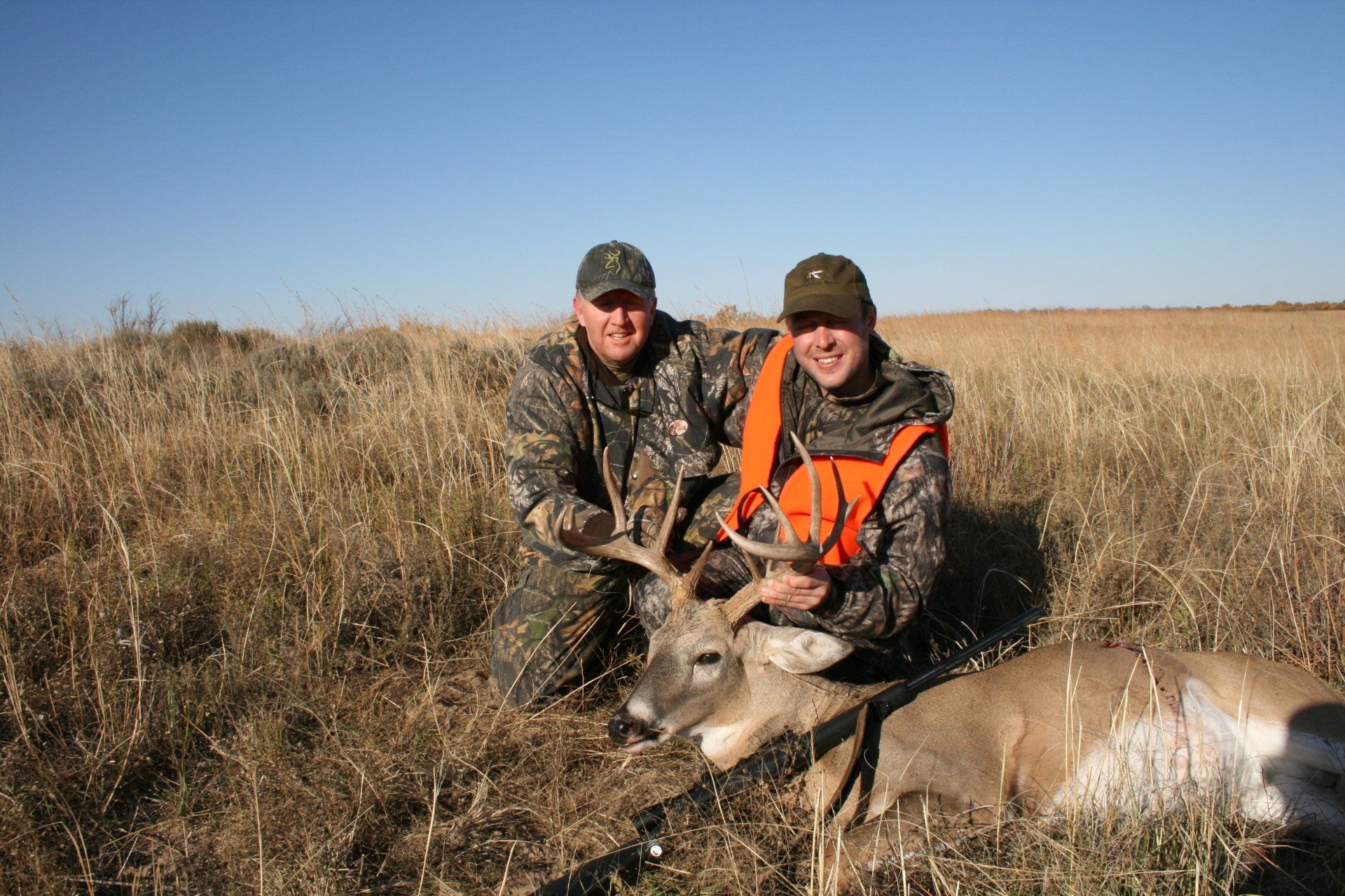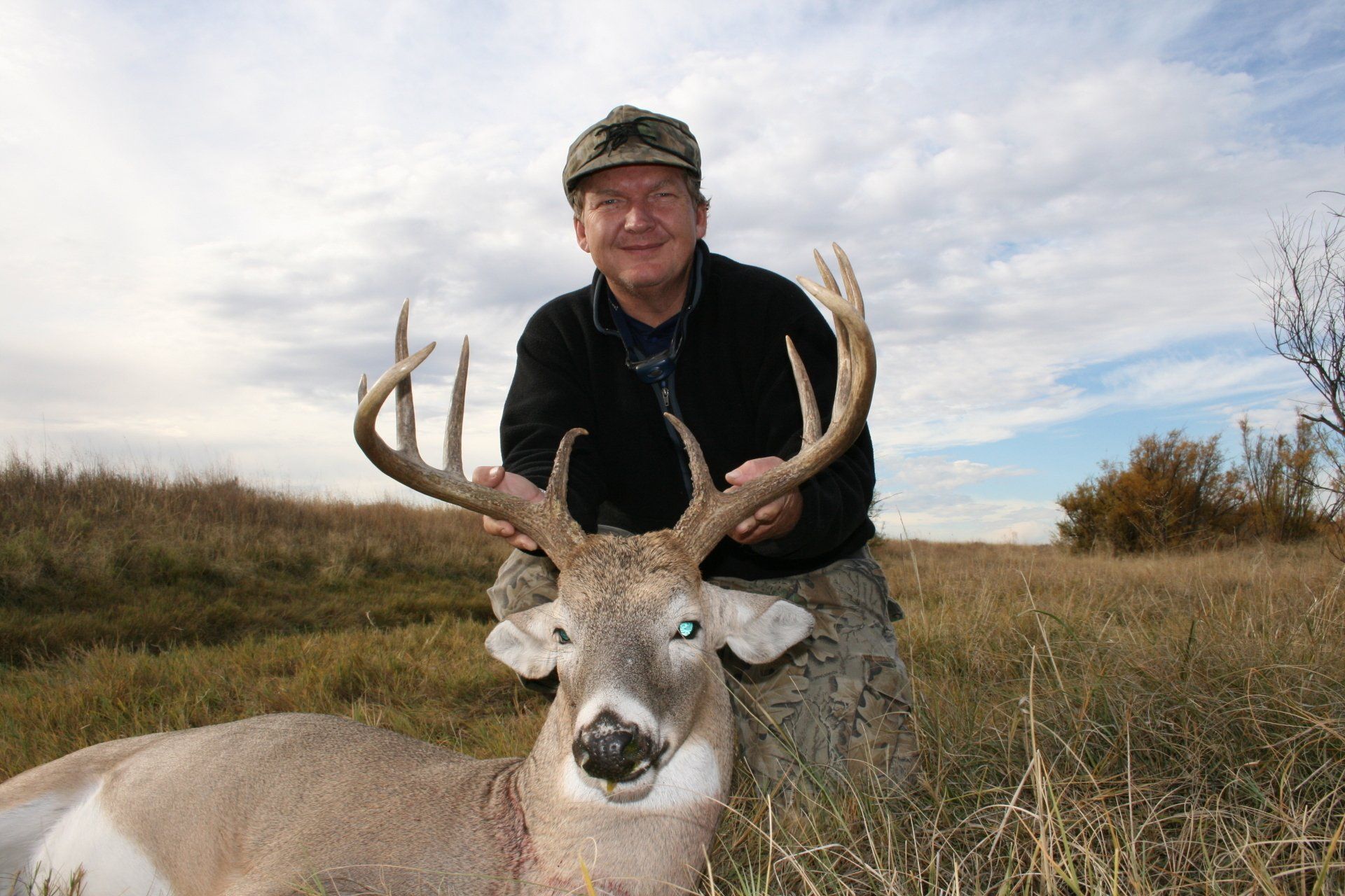 The south side has much of the same with more brushy cover and a joining acres of wheat, alfalfa, and milo fields. The are no through roads and only 2 access roads to the ranch. This makes a nice refuge in deer paradise. The ranch has been leased to one person for fifteen years taking only mature whitetail bucks. We are doing limited hunts on the ranch so call and book early.