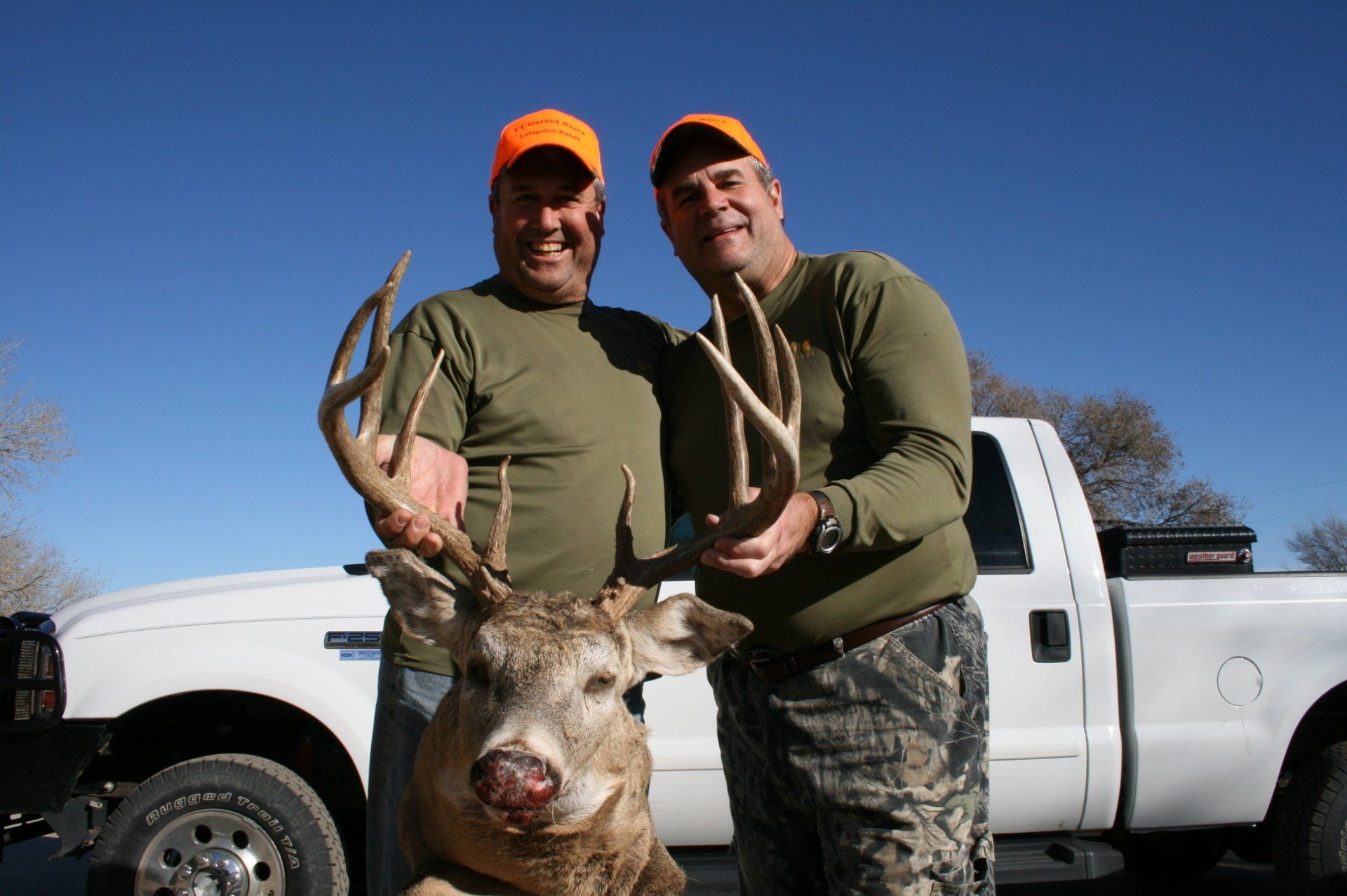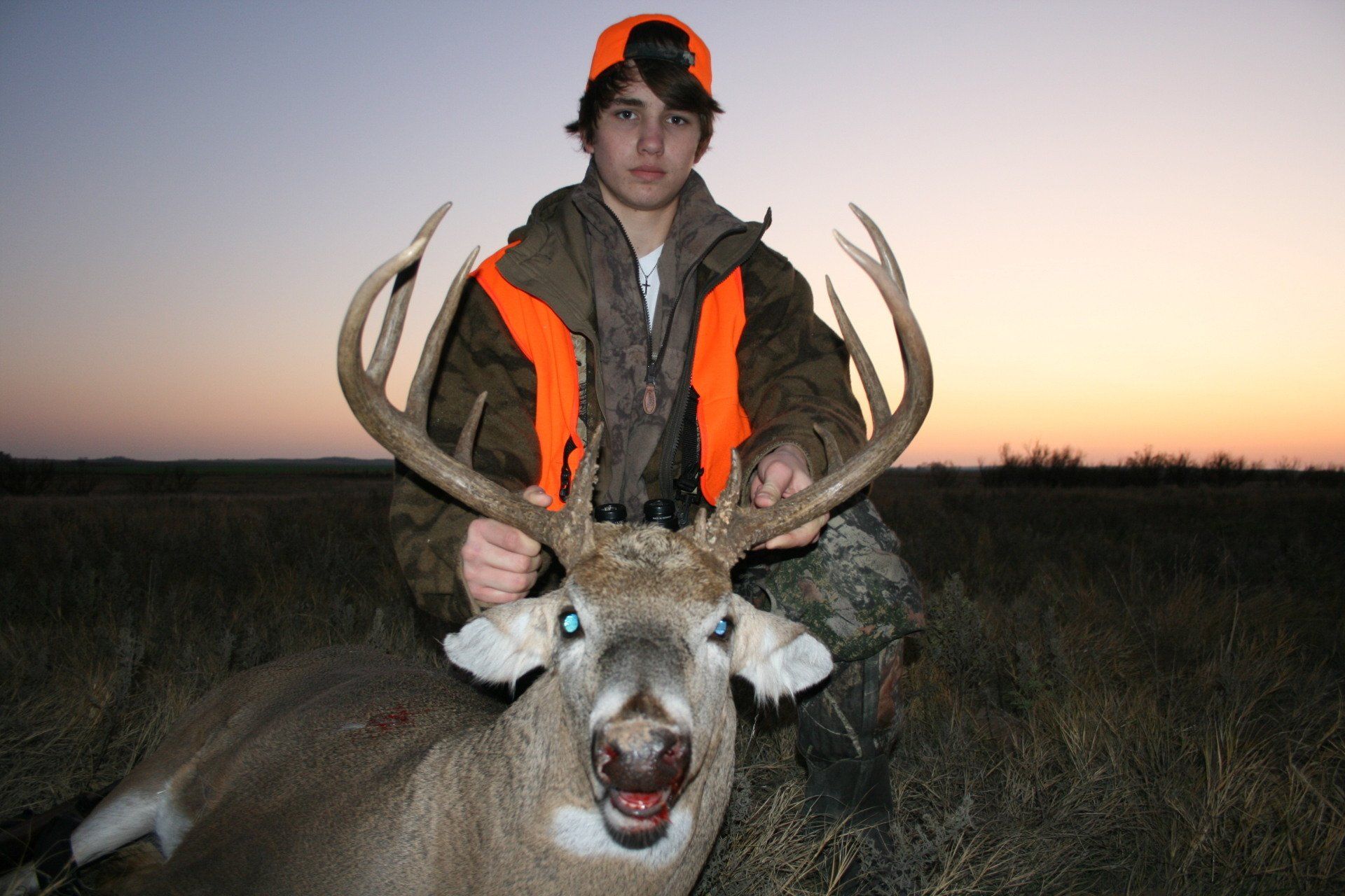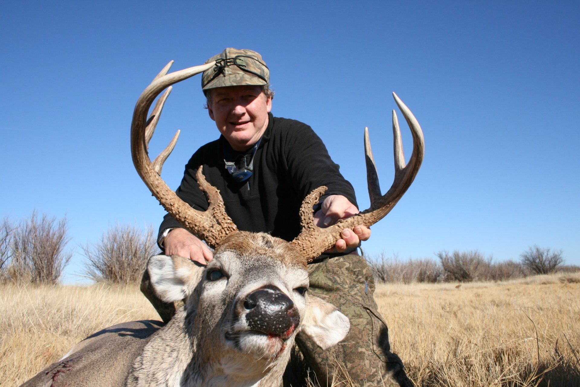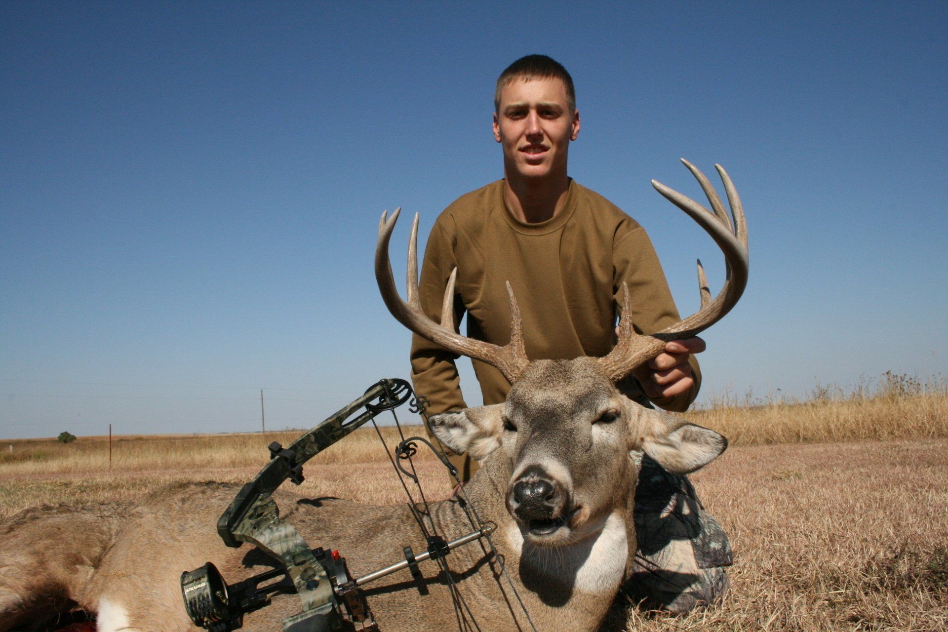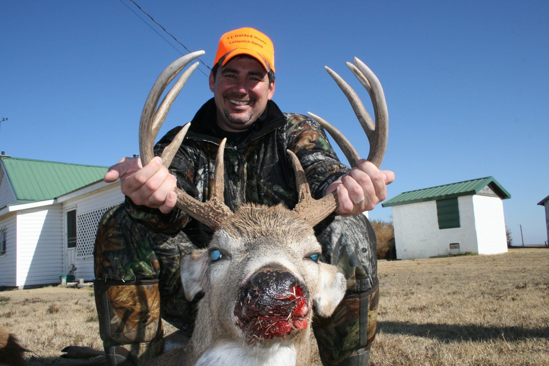 The south side has much of the same with more brushy cover and a joining acres of wheat, alfalfa, and milo fields. The are no through roads and only 2 access roads to the ranch. This makes a nice refuge in deer paradise. The ranch has been leased to one person for fifteen years taking only mature whitetail bucks. We are doing limited hunts on the ranch so call and book early.